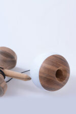 Featuring a full Zebrano wood kendama. the top of the tama painted in white and coated with our new clear coat – RHINO CLEAR.
